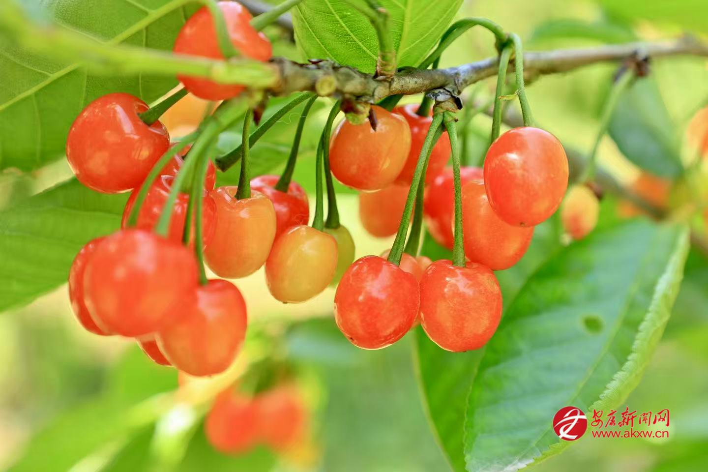 初夏时节,汉阴县城关镇月河村李家沟千亩樱桃进入成熟旺季。房前屋后、漫山遍野的樱桃树枝繁叶茂,红彤彤的果实缀满枝头,宛如一串串晶莹剔透的玛瑙,吸引各地游客纷至沓来,“采摘游”持续升温,果农们也迎来了丰收增收的黄金时节。