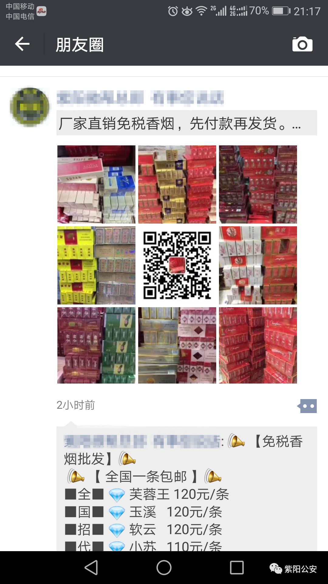 2018年3月以来,违法行为人徐某利用微信多次在微信朋友圈发布涉及网络赌博链接、销售香烟等广告链接,为违法犯罪活动做网络宣传,收取相关费用,从中非法获利。紫阳县公安局依据《中华人民共和国网络安全法》第六十七条规定,对违法行为人徐某做出行政拘留五日处罚。